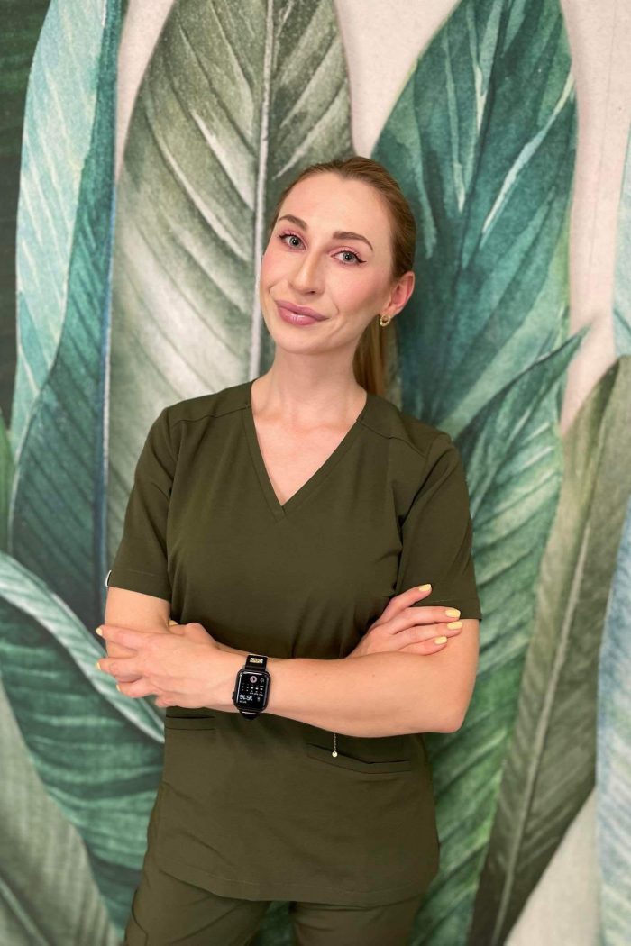 „Jestem absolwentką kierunku lekarsko-dentystycznego, który ukończyłam w 2017 roku. Specjalizuję się w leczeniu endodontycznym, stomatologii zachowawczej i estetycznej. W pracy stawiam na empatię, precyzję oraz spokojną, zrozumiałą komunikację – wierzę, że dobre samopoczucie pacjenta i zespołu ma kluczowe znaczenie w procesie leczenia. Stale poszerzam swoją wiedzę, biorąc udział w licznych kursach i szkoleniach, by móc oferować nowoczesną, skuteczną opiekę”.